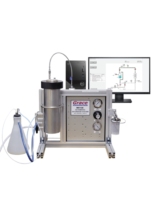 O Sistema de Saturação Automatizada de Núcleos M9106 da Grace Instrument é um saturador controlado por computador, utilizado para realizar uma sequência de ciclos de vácuo e saturação em amostras de núcleo, tanto em formato de plugue quanto em amostras de núcleo de diâmetro total (opcional), de forma automática.